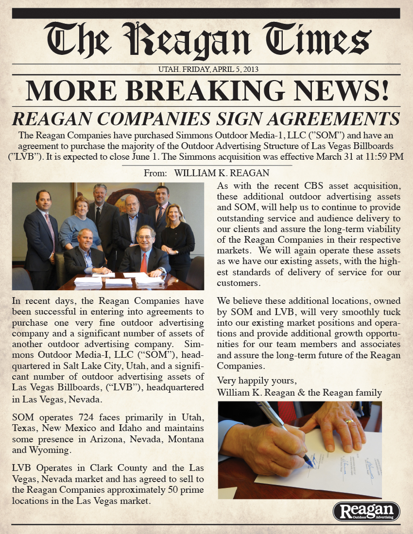 Beginning in 1965 in Salt Lake City Utah, a young, energetic William Reagan Sr. saw an opportunity to help customers get the most out of their advertising dollar.